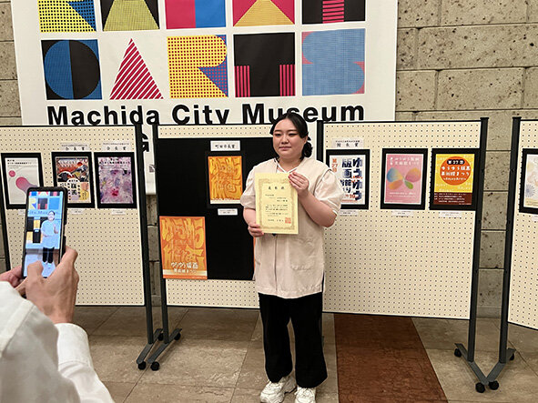 今年は当学グラフィックデザイン科2年生のK.Hさんが町田市長賞(イベントのメインポスターに採用)、同じくグラフィックデザイン科3年生のM.Wさんが館長賞を受賞しました。
