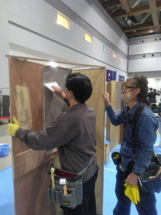 会場の東京ビッグサイト(東京都江東区)では、ジェイシフ全国技能競技大会ブースにてカーペットタイルの敷き込み、壁紙貼り、ロールスクリーンの組立の実技などを体験することができ、あらためて職人さんの技術の素晴らしさを実感しておりました。