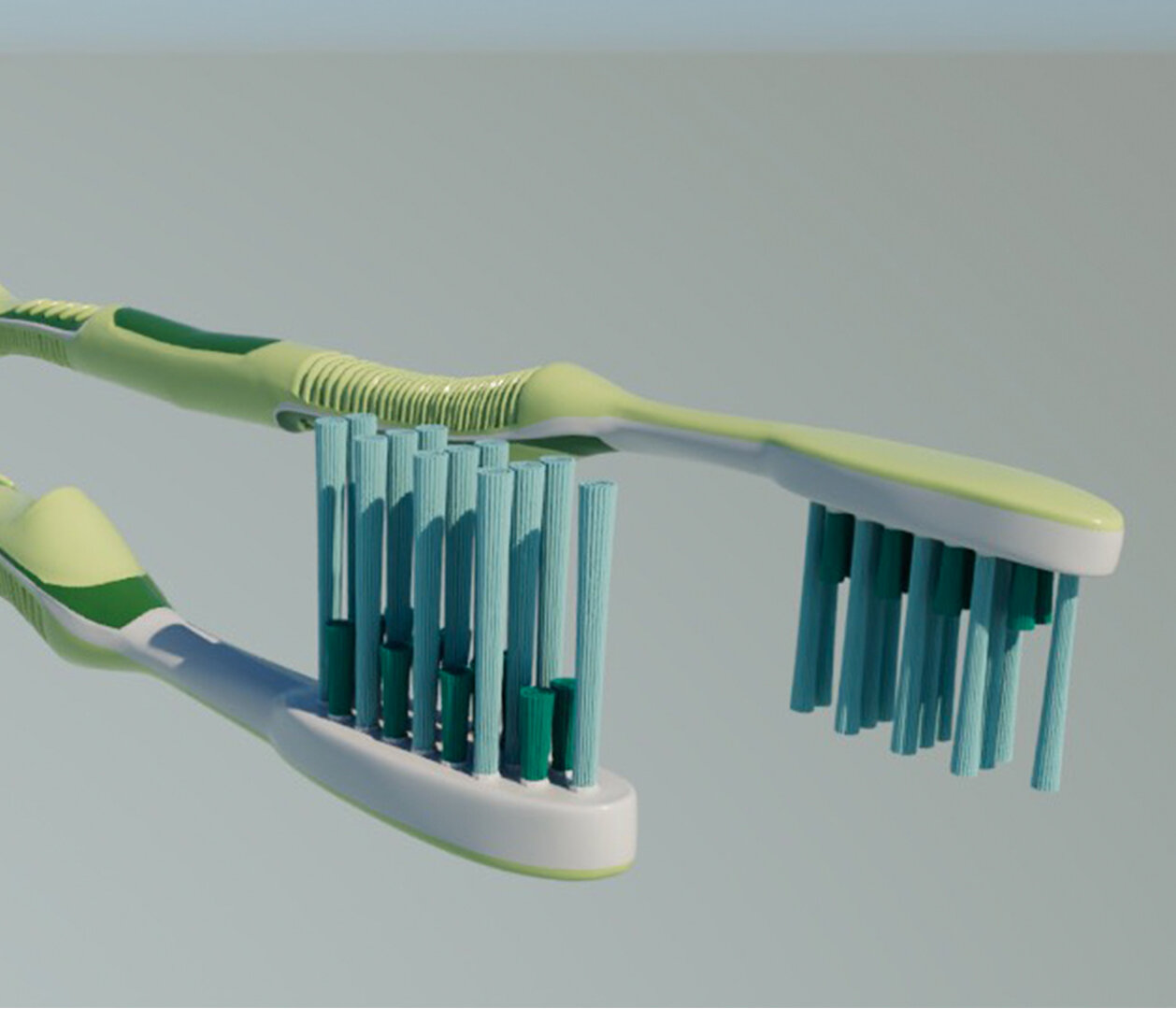 「製品化計画に3DCGで協力!」 2025.12.22 学科TOPICS CGアニメーション科 CGアニメーション科では、企業から製品化の計画を進めるにあたり、3DCGでイメージを具体化して欲しいという依頼をいただきました。 その商品はハブラシ。ここでは伏せますが、特許取得済みの面白い特徴があるのです。一通りできたCGに企業の方から調整の指示をいただき、無事完成しました! 製品化を楽しみにしたいです。