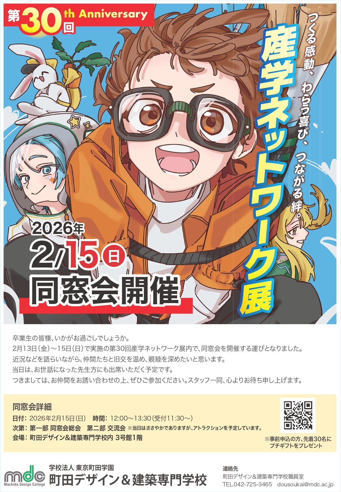 第30回産学ネットワーク展(2月13日~15日)内で、同窓会を開催する運びとなりました。